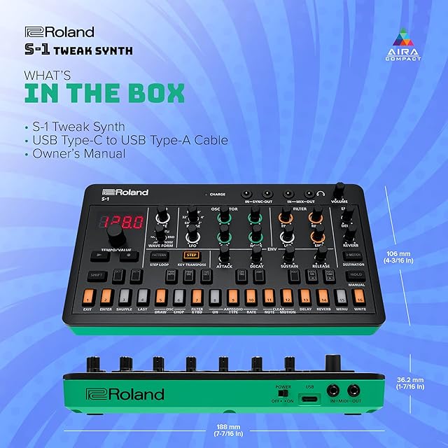 Roland ローランド シンセサイザー S-1 ポータブル ポリシンセ ステップシーケンサー AIRACOMPACT Tweak Synth コンパクトサイズ 作曲/簡単/ライブ/ビートメイク