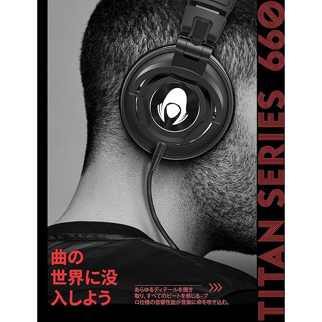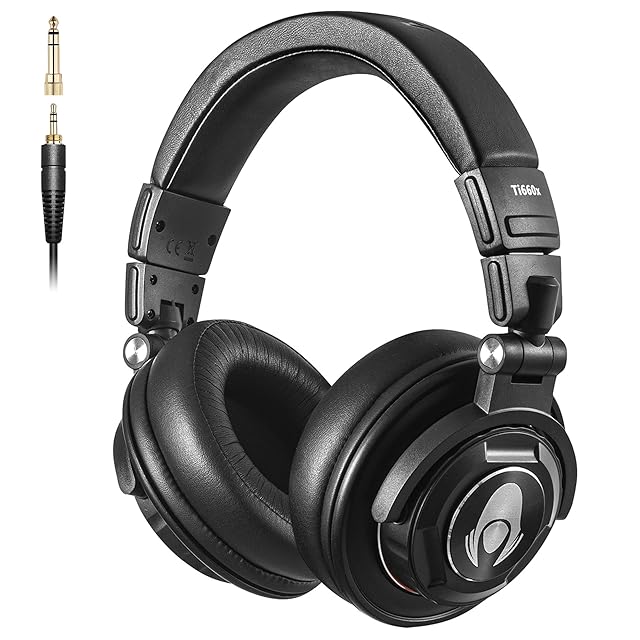 Talomenプロフェッショナル有線モニターヘッドホ50mm ドライバー ン スタジオレコーディング/楽器練習/ミキシング/DJ/動画編集/モニターヘッドホン/着脱式ケーブル ブラック Ti660x