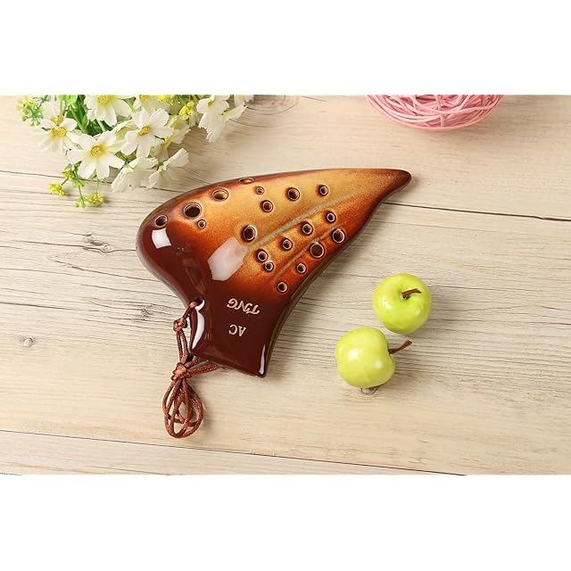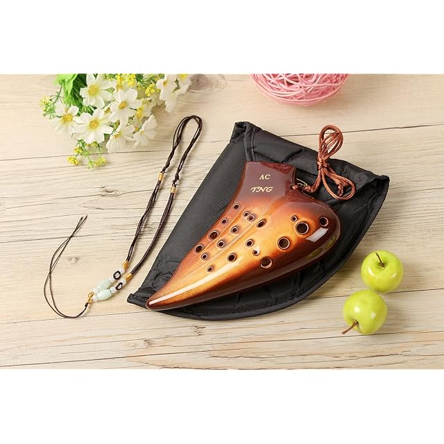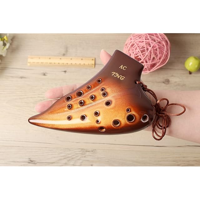 TNG オカリナ 楽器 [ トリプル/アルト/ブラウンゴールド ] C調 AC 複数管 (専用ケース付き) ocarina 釉薬仕上げ 三管 陶笛 管吹奏 茶色