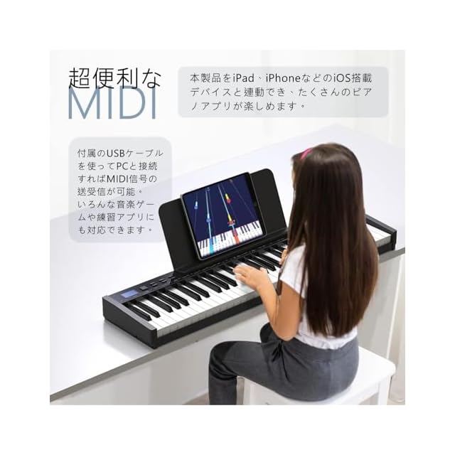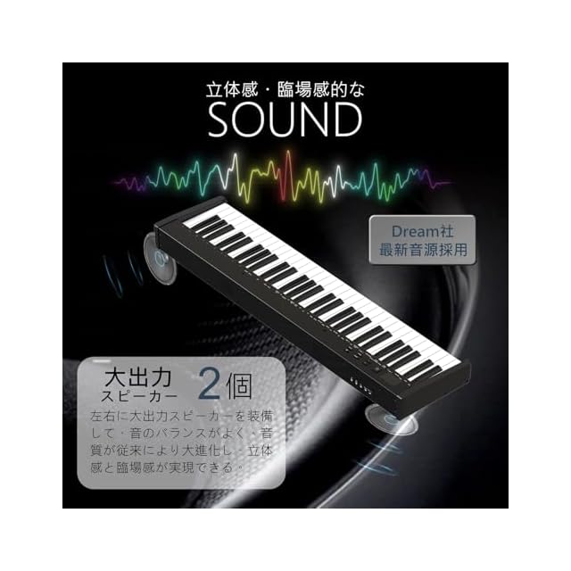 【フランスのDREAM最新音源採用&二つスピーカー搭載&MIDI機能対応可】フランスのDREAM音源を採用して、リアルなピアノ音のバランスと艶やかな高音の響きを実現しました。【 MIDI機能対応可】本製品はMIDI対応でiPhone、iPadなどと連動、perfect pianoなどいろんなピアノアプリが楽しめます。