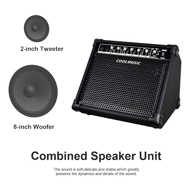 Coolmusic DM30 AMP 30 ワット電子ドラム アンプ キーボード アンプ Aux 入力と BT、2 入力、3 バンド EQ と DI 出力