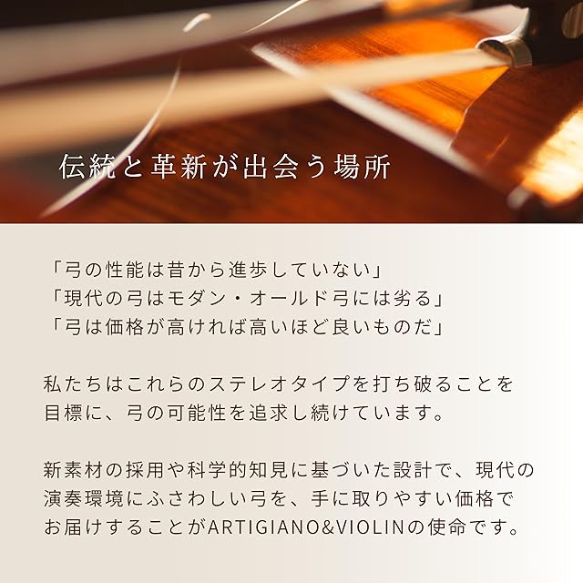 アルティジャーノ&バイオリンの楽弓は、安心の1年保証付きです。保証内容の詳細は別途画像をご覧ください。