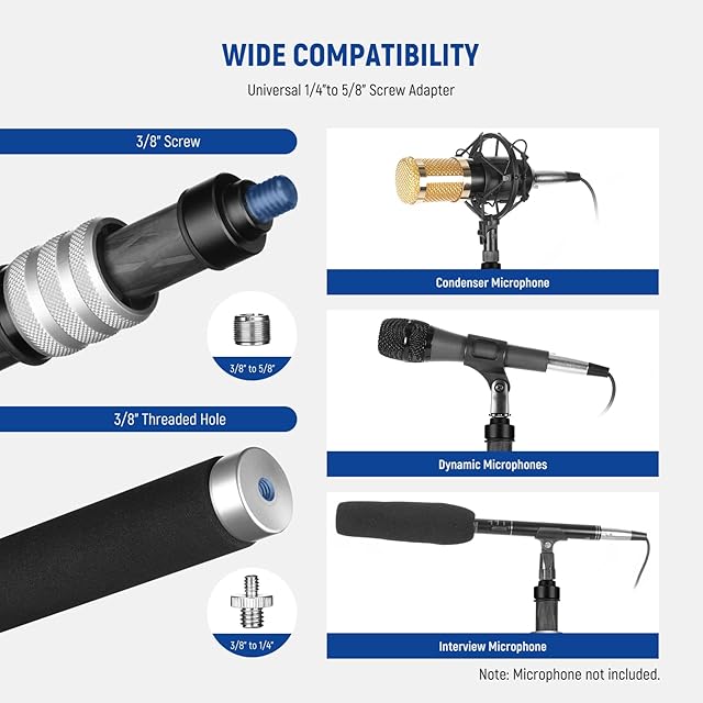 【幅広い互換性】ブーム ポールには3/8"の取り付けネジが組み込まれており、さまざまなショックマウント、マイククリップ、および3 本のケーブルストラップにより、ケーブルを簡単に整理できます。