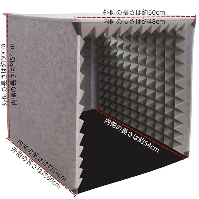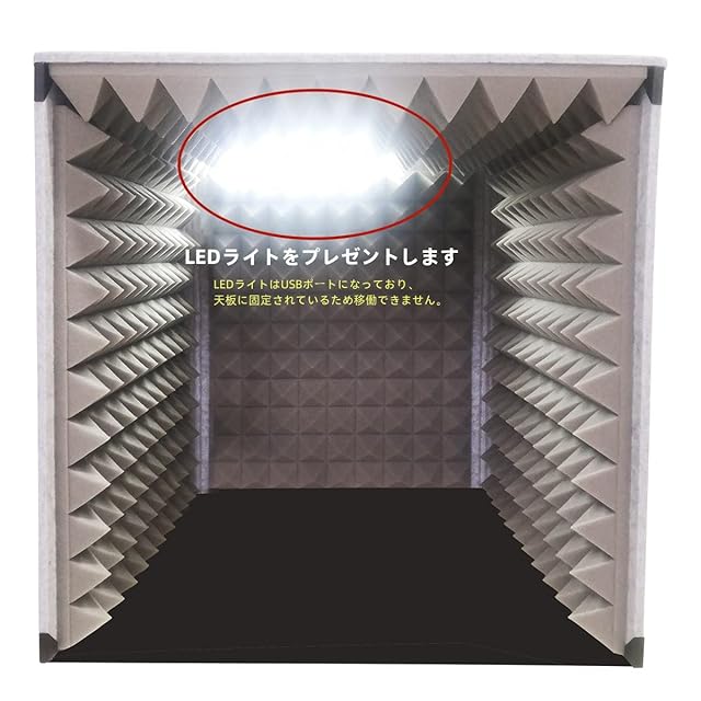 【製品説明】外寸約:60*60*60cm、内寸約54*54*48cmです. 内容:防音ブース*1、LEDライト*1です.