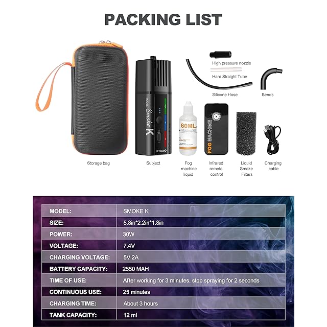 LENSGOスモークマシンポータブル/屋内用手持フォグマシン/屋外小型 撮影スモークマシン/ハロウィンパーティー/結婚式に使います