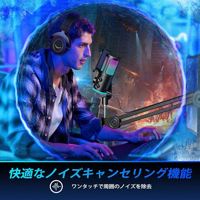 【ノイズキャンセリング機能】ゲーミングUSBマイクとして、先端なノイズリダクション機能が搭載されており、チームメイトと戦略を練っているときでも、ストリーミング中でも、ボタンを押すと音声をよりクリアに捉えます。カーディオイド集音パターンで、正面からの音を集音し、周囲の雑音を拾いにくく、純粋な音が非常にクリアな品質で届けられ、ゲーム中にスムーズな通信が確保できます。