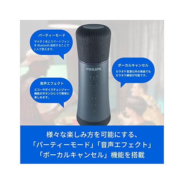 PHILIPS フィリップス Bluetooth スピーカー搭載 カラオケ用ワイヤレスマイク DLM9317C カラオケ@DAM(FireTV・Fireタブレット)推奨 Pokekara(ポケカラ)推奨マイク Bluetooth/有線接続対応
