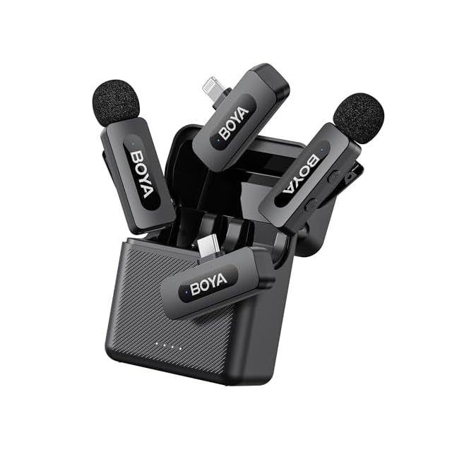 BOYA BY-V3 Combo 2in1 ピンマイク iPhone/Type-C Android/対応 2人同時使用 伝送距離100m ノイズ軽減 音画同期 超ミニ クリップ式 プラグ&プレイ APP不要 36時間連続使用 360°集音 360°回転可 クリップ式 超ミニマイク Vlog撮影/動画配信/生放送/ASMR/TikTok用