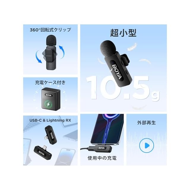 【全新一代BY-Vシリーズ&機能満載】弊社がピンマイクに専念して、何万回もテストを重ねて完成させた、安定した革新的なデザイン製品。BOYA Audioの高性能ノイズキャンセリング、リアルタイム自動同期、360°集音などを搭載し、優美な弧線と精緻な外観、長時間使用しても快適な性能を備えています。他社製品とは異なる超便利な機能を搭載!接続された状態でも、録画したビデオの音声をそのまま聞くことができます。