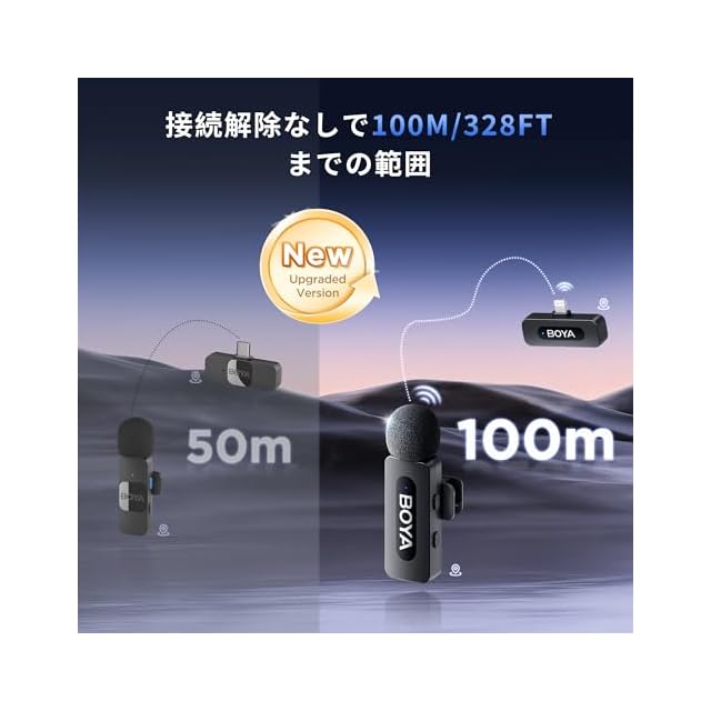 【通信範囲が倍増】従来のBY-Vシリーズと比較して、通信範囲が100メートルに倍増。さまざまなシーンで、安定した接続を提供し、長距離録音でも信頼性抜群のパートナーとして活躍します。