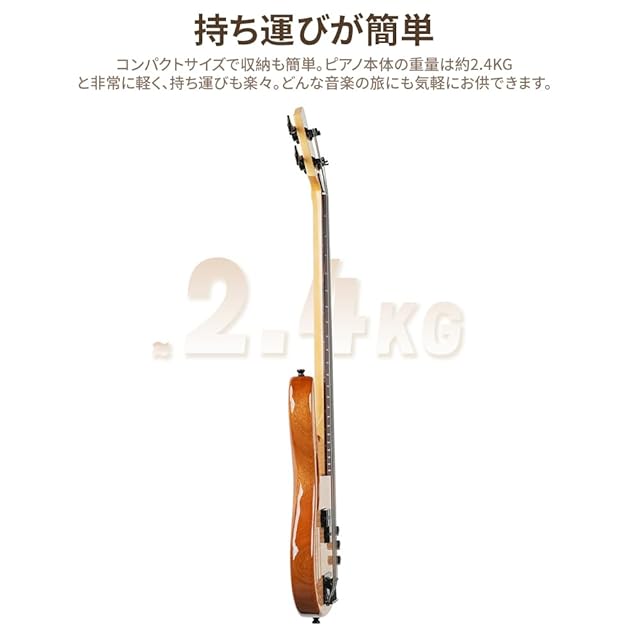【軽量·持ち運びに便利】ボディはアフリカンマホガニー材を使用し、MINI BEASTの本体重量はわずか2.4kgで、従来のエレキベースの約半分です。設計から制作、検査に至るまで、すべて専門のミュージシャンが監修しており、軽量でありながら、従来のエレキベースと同等のクオリティを実現しています。練習や屋外の即興、旅行での演奏にも最適な選択です!