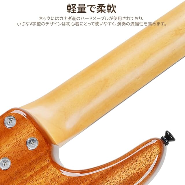 AKAMA MINI BEAST エレキベース 33"ミニサイズ トラベラーエレキベース | デジタルピックアップ内蔵 | スマホ接続で伴奏再生 | アンプ·ヘッドホン·イヤホン対応 | 自宅で静音練習可能 | Type-CでOTG録音·充電機能搭載 | ソフトケース・純綿ストラップ付き (FMフレイムメイプル)