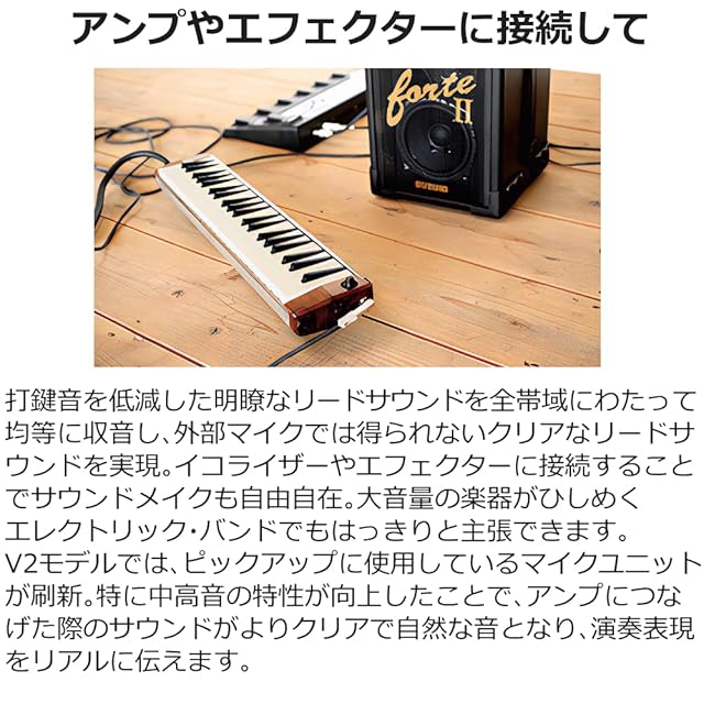 【スズキ 鍵盤ハーモニカ ハモンド セット説明3】 鍵盤ハーモニカ の名機、スズキ のHAMMOND PRO-44Hv2は、V2モデルでマイクユニットが刷新され、特に中高音の再現性が向上しています。演奏者の表現力を最大限に引き出します。