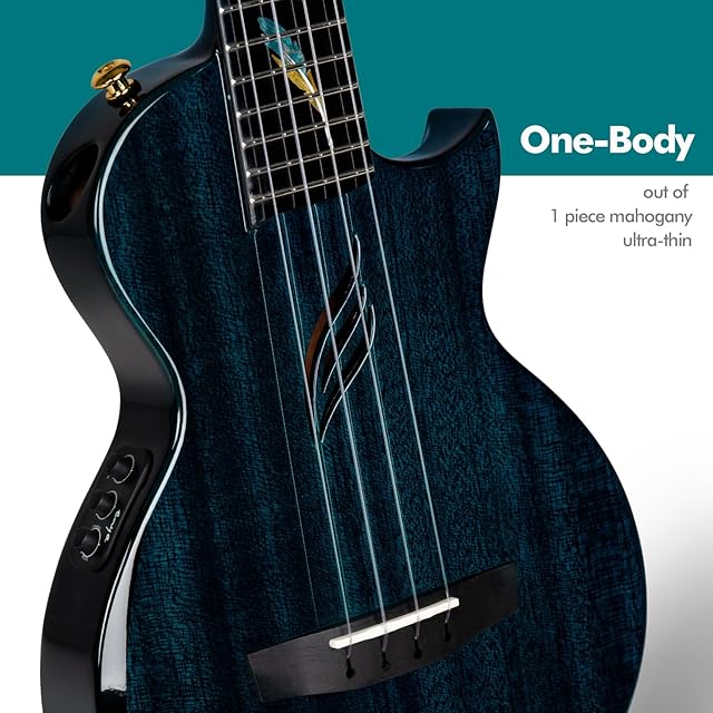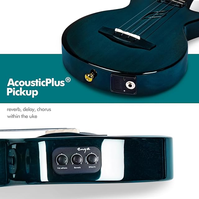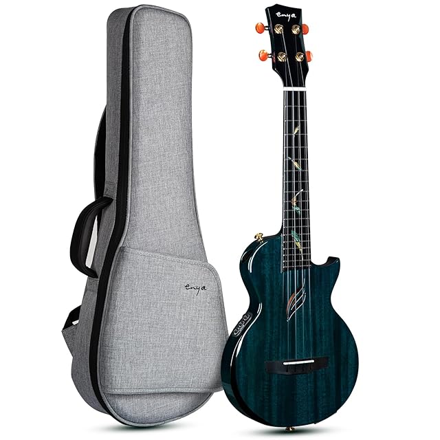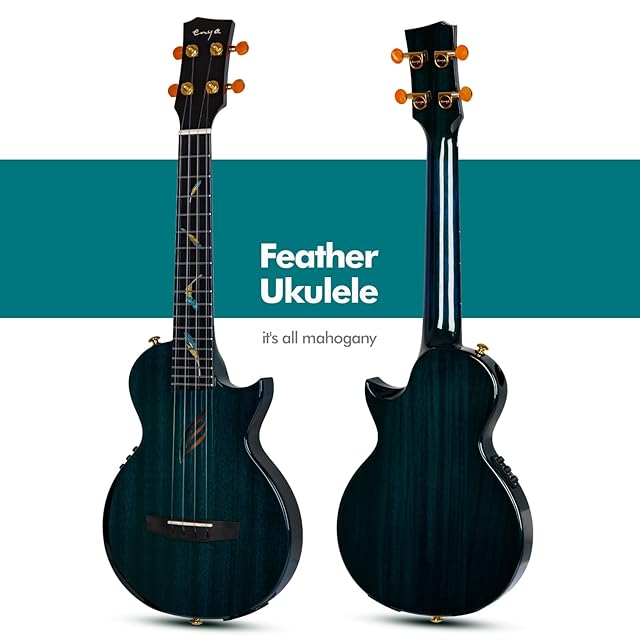 【Enya EUT-Feather AcousticPlus】エンヤテナーウクレレ・エレキウクレレ・マホガニー・オール単板(CNC加工3ピース)カラフルな羽のインレイ・ダブルストラップケース・ピックアップ付き【国内正規品】(ブルー)