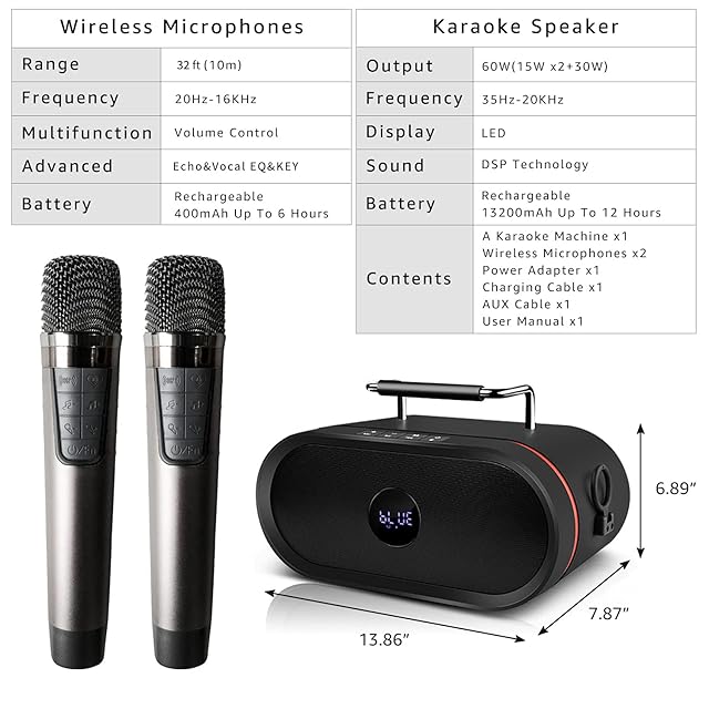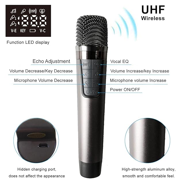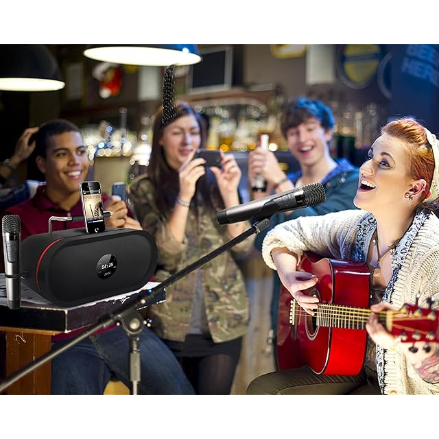 ♪【RHMspeakerPromise】ご家族に喜ばれる高品質な商品をお届けすることを目指しています。 12か月の保証と、フレンドリーで簡単にアクセスできるテクニカルサポートにより、購入が保証されます。パッケージには、カラオケマシン、2 *ワイヤレスハンドヘルドマイク、電源アダプター、充電ケーブル、AUXケーブル、およびユーザーマニュアルが付属しています。 (暖かいヒント:マイクとマシンを10フィート以内に保つと、最高の音声効果が得られます。)