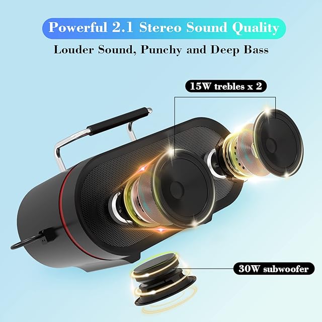 ♪【アドバンストオーディオシステム】このポータブルステレオカラオケマシンは、2*15wのトレブルスピーカーと1*4インチの専用サブウーファースピーカーユニットを内蔵しています。フルレンジのノートと豊かな低音を備えた鮮明なオーディオサウンド機能をお楽しみいただけます。便利な持ち運び用ハンドルで、どこにでも簡単に持ち運びでき、パーティー、カラオケ、結婚式、屋外や屋内でのアクティビティに最適です。