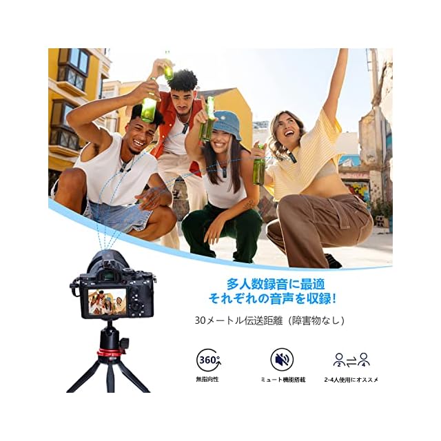 【一牽引四設計、複数人で同時に使用可能】このピンマイクは一牽引二牽引または一牽引四牽引を選択でき、一人でも複数人でもワイヤレスで音を拾うことができます。1つのワイヤレス送信機は複数の受信機とペアリングして信号を送信することができます。 複数のペアリング、自由に異なるペアリングモードを選択することができ、複数のニーズを持つクリエイターに最適です。