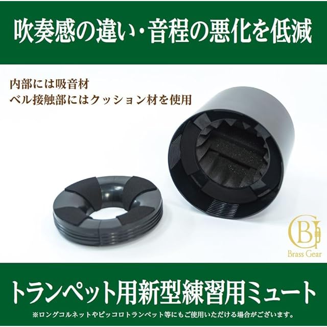 トランペット ミュート 練習用 消音 「Brass Gear」 プラクティスミュート Home Mute ホームミュート 軽量 自宅 練習 器具 (カラー: Black)