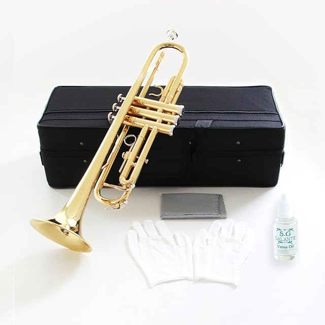 トランペットセット 初心者入門 Bb Bフラット 吹奏楽 金管楽器 練習用 (ゴールド)