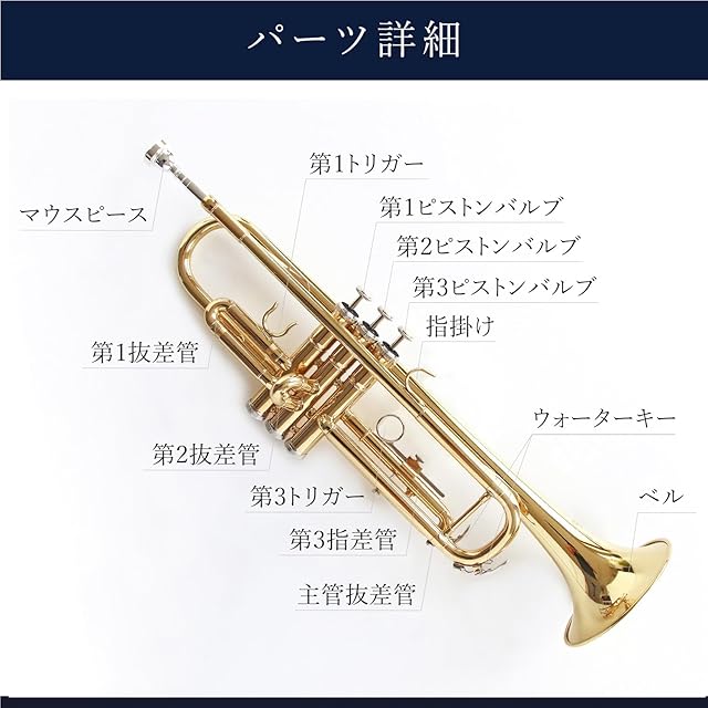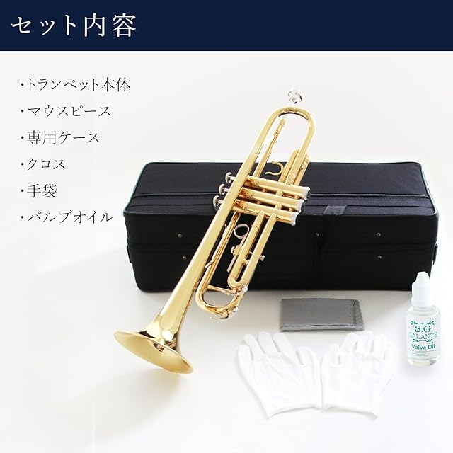 セット内容:トランペット、専用ケース、マウスピース、クロス、手袋、バルブオイル