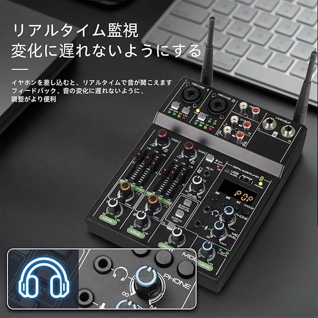 録音してPCに接続:このパーソナルミキサーには、録音してMACまたはPCに接続するためのUSBサウンドカードとオーディオインターフェイスがあり、ユニバーサルデジタルオーディオファイルとの互換性があります。初心者またはスタジオプロフェッショナルアプリケーションで使用できます