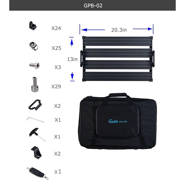 Guitto ギターエフェクター ペダルボード クランプブロック固定効果ペダルボードアルミニウム合金超軽量キャリングバッグ付き (中)
