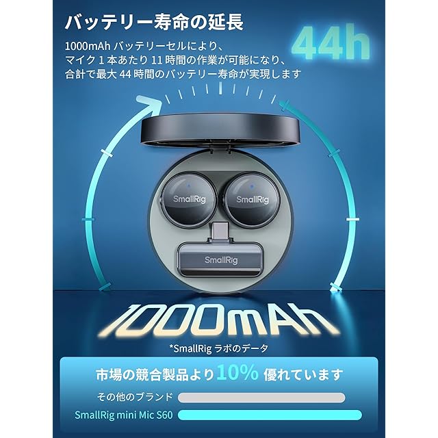 SmallRig S60 ワイヤレス ラベリア マイク iPhone用 Android用 USB C付き 44時間バッテリー付き ミニマイク ノイズ低減 ミュート ゲイン クリップオンラペルマイク ピンマイク ビデオ録画 Vlog インタビュー ストリーミング youtube用 4934