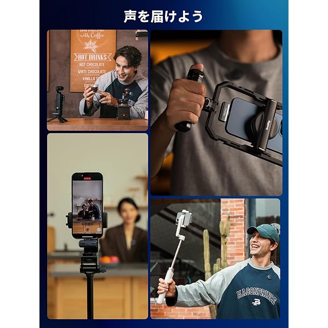 【使い方は簡単】送信機と受信機は自動的にペアリングされ、すぐに録音を開始できます。USB-Cバージョンの受信機は、Androidスマートフォン用、iPhone 16/15用、アクションカメラ用に設計されており、クリーンでシャープなサウンド出力を提供します。