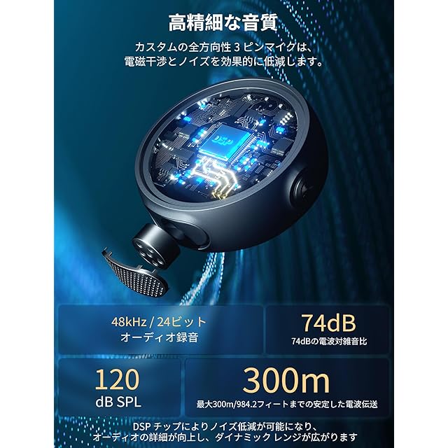 【高解像度品質】カスタマイズされた全方向性3ピンマイクは、電磁干渉とノイズを効果的に低減します。このマイクは、48 kHz / 24ビットでの高品質のオーディオ録音、74dBの信号対雑音比のクリアなサウンド、歪みなしで最大120 dB SPLの大音量をキャプチャする機能、最大300m / 984.2フィートの安定した信号伝送を提供します。