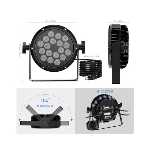 【IP65防水パーLED】フルキャストアルミニウムハウジングで設計されたLEDディスコライトパーティーライト、美しい防水シリコンポール付き。 高品質のゴム製電源コードには黒色の防水シーラントが添加されており、変形することなく安定性と耐寒性を保ちます。