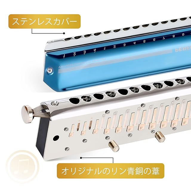 上品な材質: 豊かな音、応答性、気密性、快適性 - リン青銅リード&1.2mm厚リードプレートと精密に作られたプラスチック製の櫛は、より高いピッチ、豊かな音と音色を得ることが容易である。リードプレートには電気メッキによる防錆処理が施されており、電気メッキ後の穴やリードの隙間の状態はより良好です。