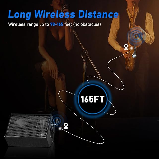 【2.4Gワイヤレス伝送】本ワイヤレスサックスマイクは、2.4Gワイヤレス伝送を採用しており、信号安定性が高く、干渉が少なく、オーディオ遅延が短いです。伝送距離はオープンエリアで最大30mです。