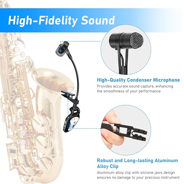 【幅広い互換性】このマイクは金管楽器用に設計されています。サックス、フレンチホルン、チューバ、トロンボーンなど様々な金管楽器に適用します。受信機はPAアンプ、スピーカーシステムなどの増幅デバイスに対応できます。コンサート、ライブ、バンド演奏、バンド練習、個人練習などの場合に大活躍しています。