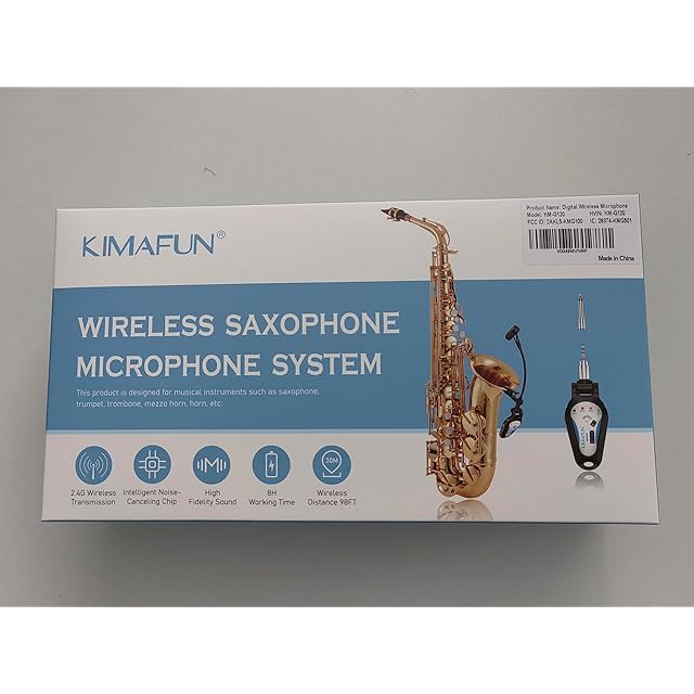 KIMAFUN 2.4Gワイヤレス サックス マイク クリップオン楽器用マイク プラグ&プレイ ノイズ軽減 30M伝送距離 8時間連続使用 サックス、フレンチホルン、トランペット、トロンボーン 金管楽器用