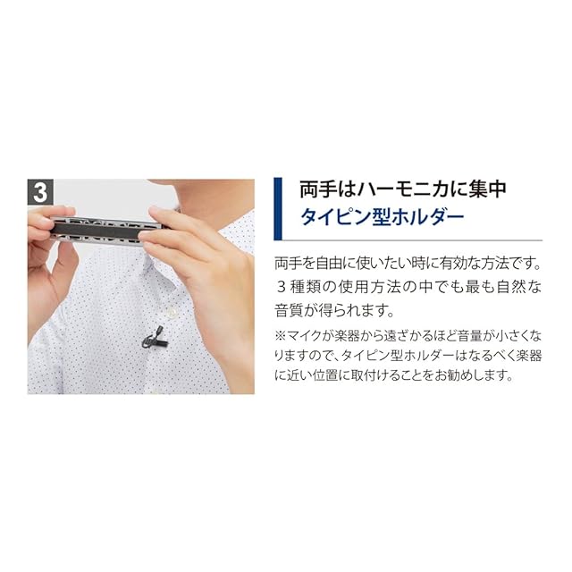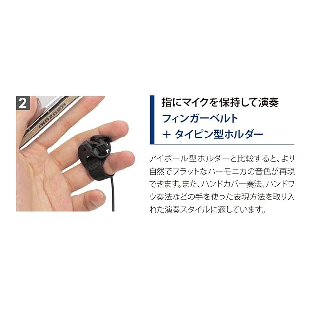 ハーモニカの音色を集音に適した特性のコンデンサーマイクを採用。付属のホルダーを使い分けることで、より適切にハーモニカの表情豊かな音色を再現できます。