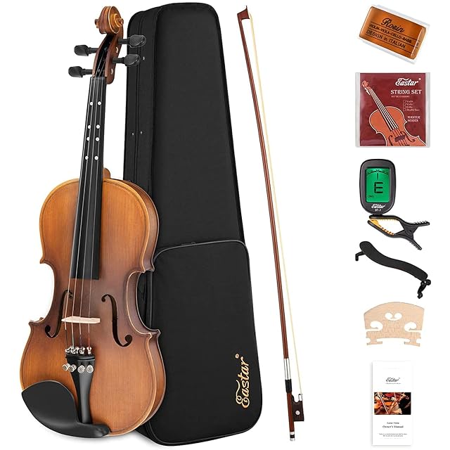 Eastar バイオリン 初心者セット 艶消し 指板マークチューナー 予備弦セット付きEVA-3 (4/4)
