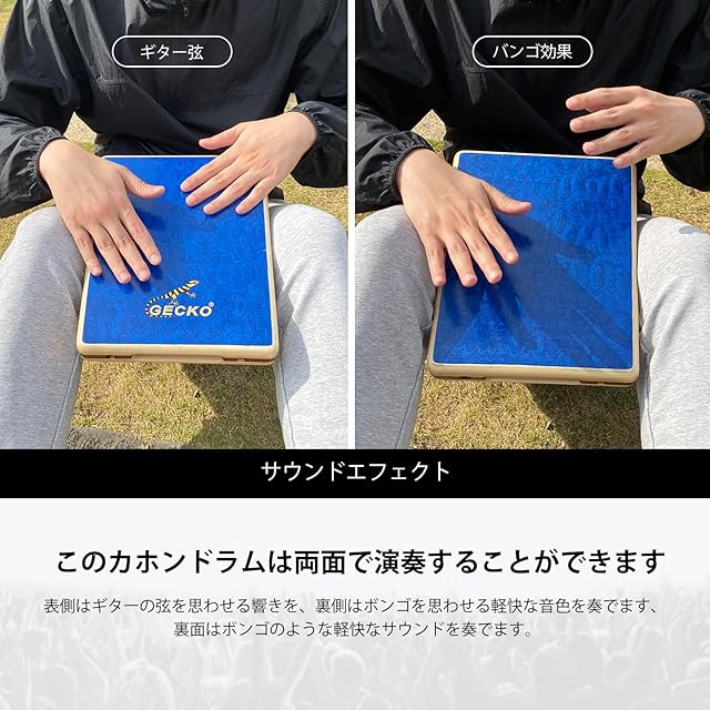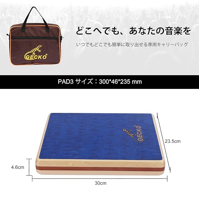 GECKOカホン、Cajon カホンドラム、ハンドドラム、トラベルカホン、打楽器 ギターの弦共鳴、キャリーバッグ付き(235*290*45mm)