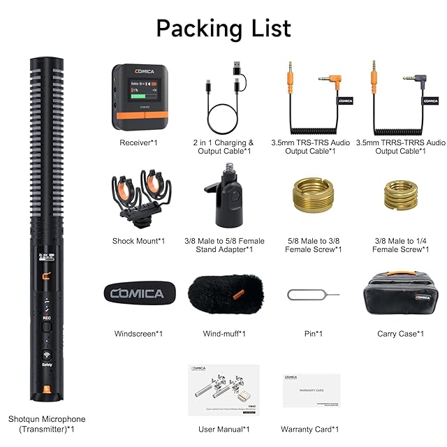 ワイヤレスマイクcomica VM40 ガンマイク【32BIT、32G内部収録、超単一指向性】2.4GHzワイヤレス+有線デュアルモード 200m伝送距離 USB C出力 外付けマイク カメラ/Android/iPhone/PC用 Vlog/Live/インタビューに対応コンデンサーマイク(TX+RX)