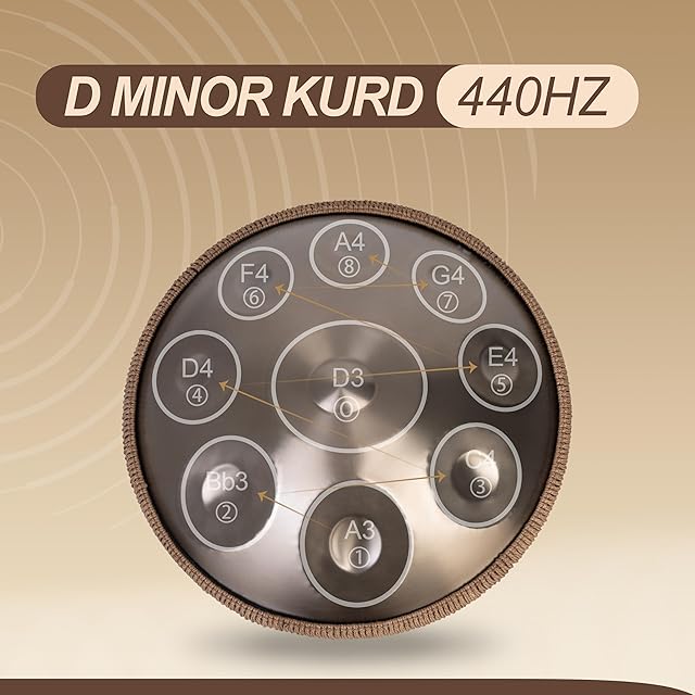 Sarospan ハンドパン ドラム - 22インチ 9音 D Kurd 440Hz - 手作り品質ハンドパン - ソフトバッグ, マレット, スタンド, 音符ステッカー, クリーニングクロス付き - アーティスト演奏動画付き