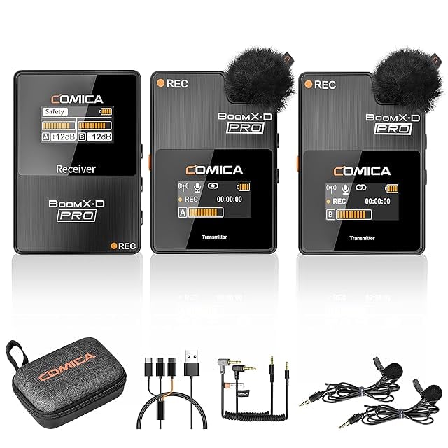 【COMICAワイヤレスマイク最新版】BoomX-D PRO最新アップグレード!2.4GHz 世界ユニバーサル周波数帯、29gミニサイズ、200M伝送距離、収納ボックスが付属しています。Vlog、ビデオ動画、海外旅行、生放送、オンライン授業や在宅勤務などに大活躍します。