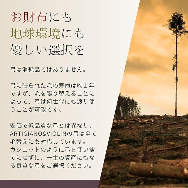 アルティジャーノ&バイオリンの楽弓は、安心の1年保証付きです。保証内容の詳細は別途画像をご覧ください。