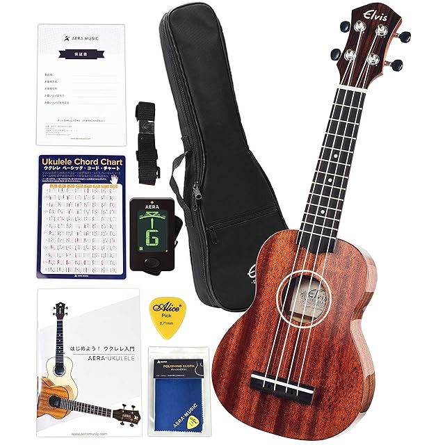ELVISエルビス・Hilo 1s・ソプラノウクレレ・マホガニー材(トップ単板)・あるグロス仕上げ(光沢あり)・美木目・検品後発送で安心!【付属品:国内保証書・チューナー・教則本・コードチャート・ピック・ストラップ・ポリシングクロース・ソフトケース】