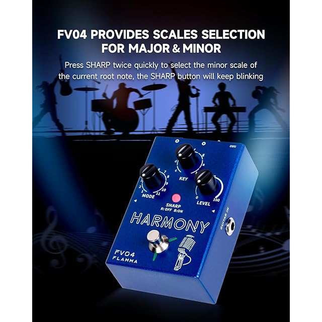 FLAMMA FV04 ハーモニー ボーカル プロセッサー エフェクト ペダル リバーブ 12 ピッチ 11 ディファレント ハーモニー モード付き 48V ファンタム 電源 ブルー ハーモニー ペダル