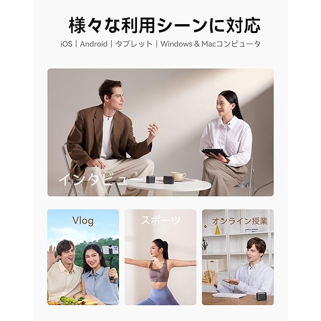 【複数のバージョンと幅広い交換性】 LARK M2S USB Type-Cバージョンワイヤレスマイクは、iOS/Androidデバイス、Windows/Macに対応します。再生時にプラグを抜く必要がなく、スマホでプラグ&プレイの録画を楽しめます。外出中のブロガーやクリエイターに最適です。