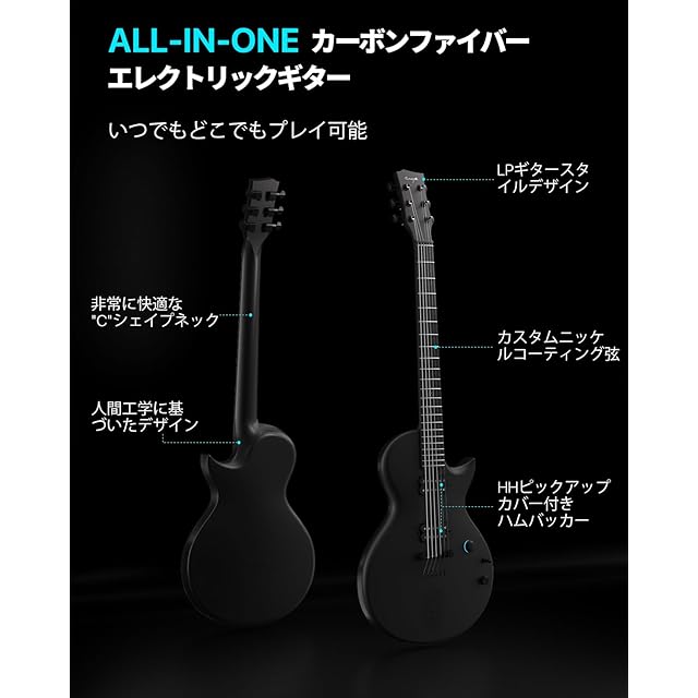 ENYA Nova GO Sonic スマートエレキギター 初心者入門セット カーボンファイバー製 10Wスピーカー&マルチエフェクター内蔵 アプリで簡単操作 ブラック