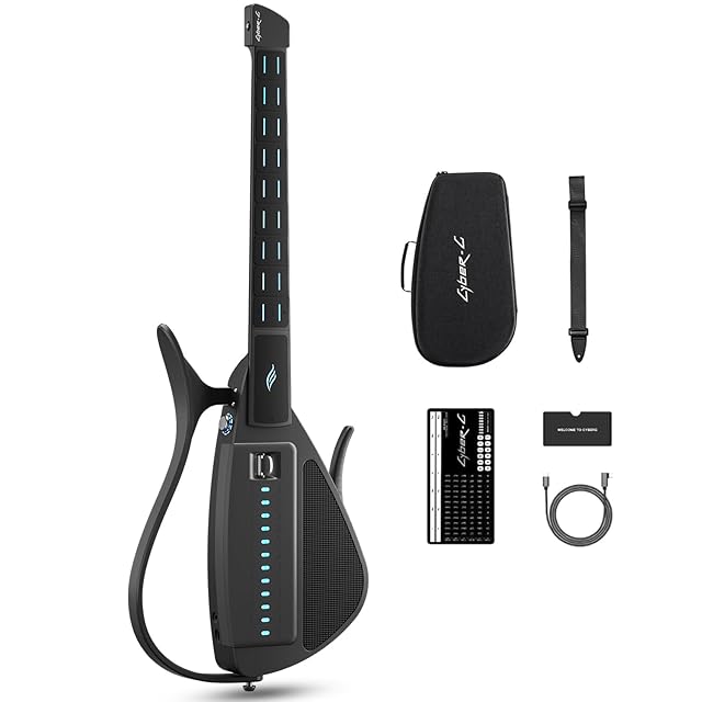 ENYA CYBER-G スマート弦なしエレキギター|折りたたみ式 携帯可能 旅行用ギター アプリ連動コード・ルーパー&バンドモード搭載|内蔵スピーカー/ドラムマシン|大人/初心者向け 簡単習得 (Black)