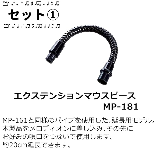 【メロディオン スズキ セット説明5】②エクステンションマウスピース MP-181 このエクステンションマウスピースは、スズキ のメロディオン 専用に設計されており、高品質な素材を使用しているため長持ちします。使い心地の良さを追求したデザインで、柔軟性のあるホースが特徴です。初心者からプロまで、幅広いユーザーに適しています。