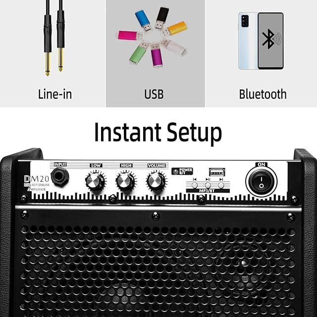 Coolmusic DM20 20W BT パーソナルモニターアンプ電気ドラムアンプスピーカー、キーボード、アコースティックギタースピーカー