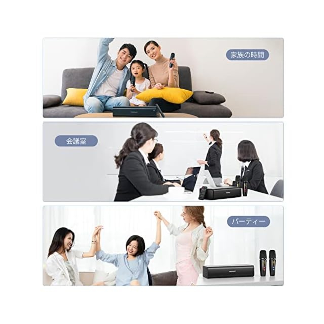 THOMSON カラオケセット 拡声器 ワイヤレスマイク2本付き PAセット Bluetooth5.0 ワイヤスステレオ対応 家庭用 USB再生 ポータブルスピーカー 屋外 スピーチスピーカー USB-C充電式ワイヤレスマイク 小型 ホームカラオケKTV ポータブル リモコン操作簡単 ミニカラオケに楽しみ 室内/アウトドア 音楽再生