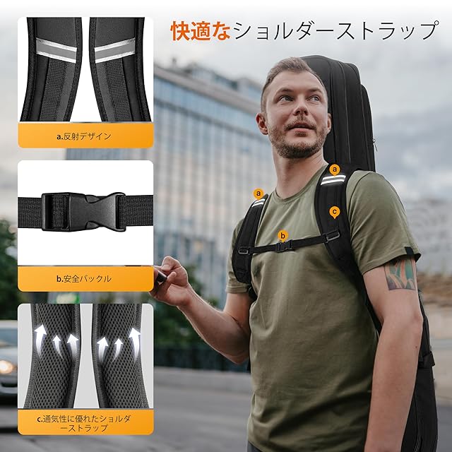 【多ハンドル・通気性のあるショルダーストラップ】ショルダーストラップが長さ調整できるだけでなく、クッション素材を採用したので、、有効に肩への負担を減少します。 エレキギターケースの正面には丈夫なPU素材の手提げグリップが付いて、側面部にも手持ちグリップが付いてるので、出演、リハーサルや授業などの場合、持ち運びに非常に便利です。また、後ろにはハンドルループが付いて、どこにでも簡単に掛けられます。